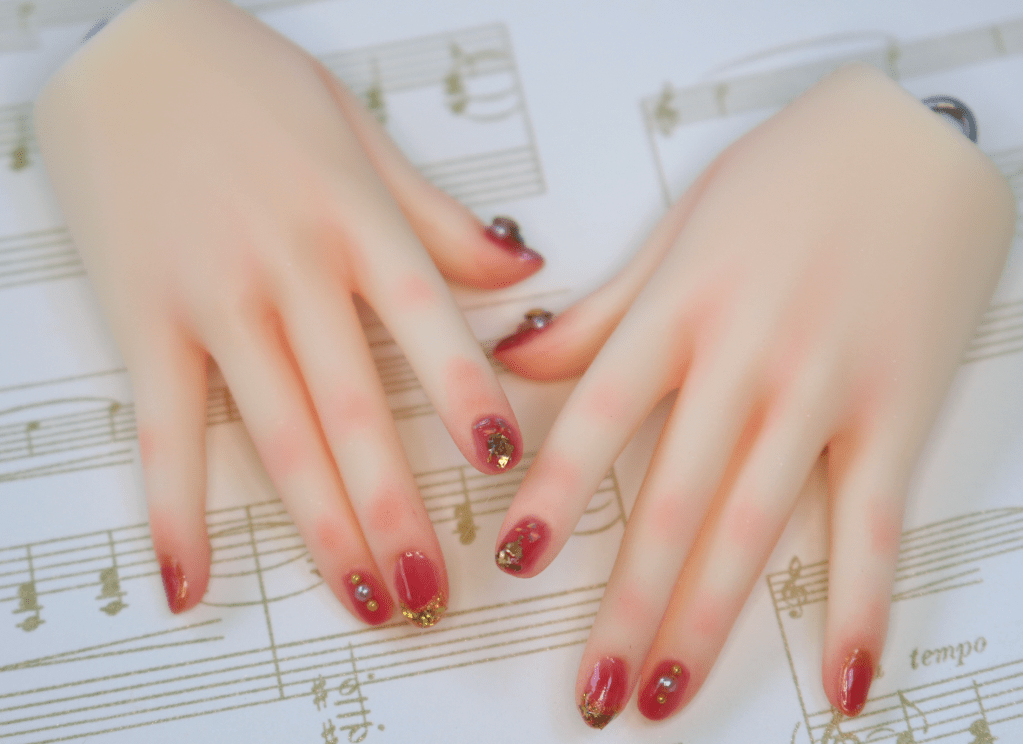 これはガラスフレンチ風にネイルアートを施しました。(ただし中指だけ)