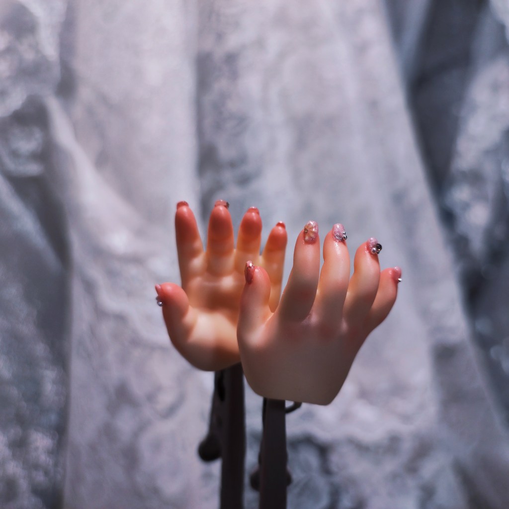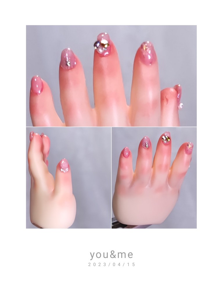 これがネイルアート前のハンドパーツです。 もうこの時点で整ってます。可愛い! 更に装飾をモリモリ施したくて、爪の長さ出しをしました。↓↓