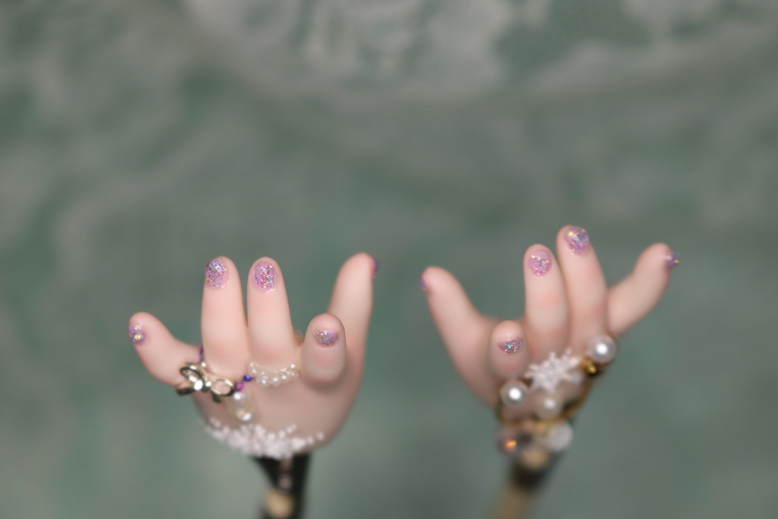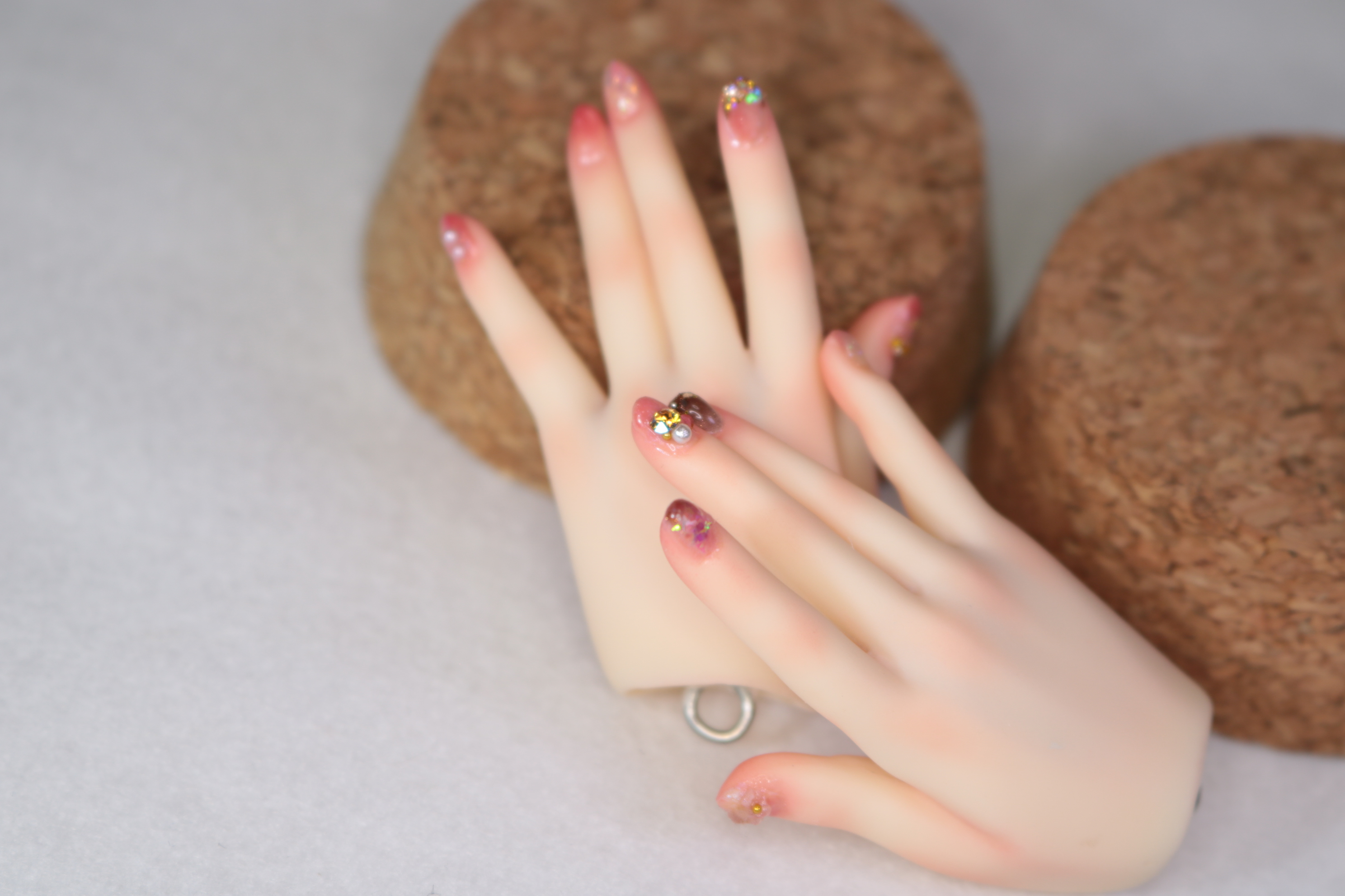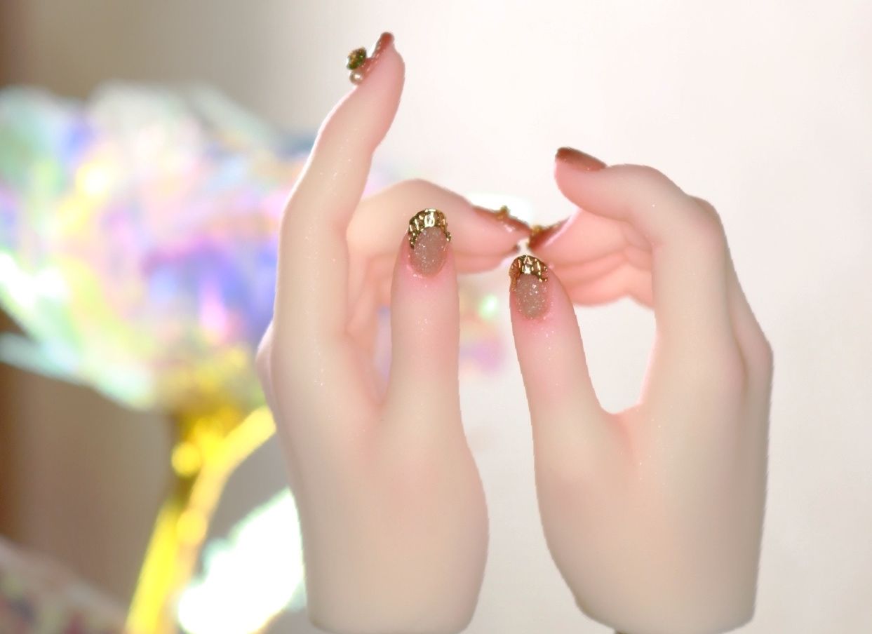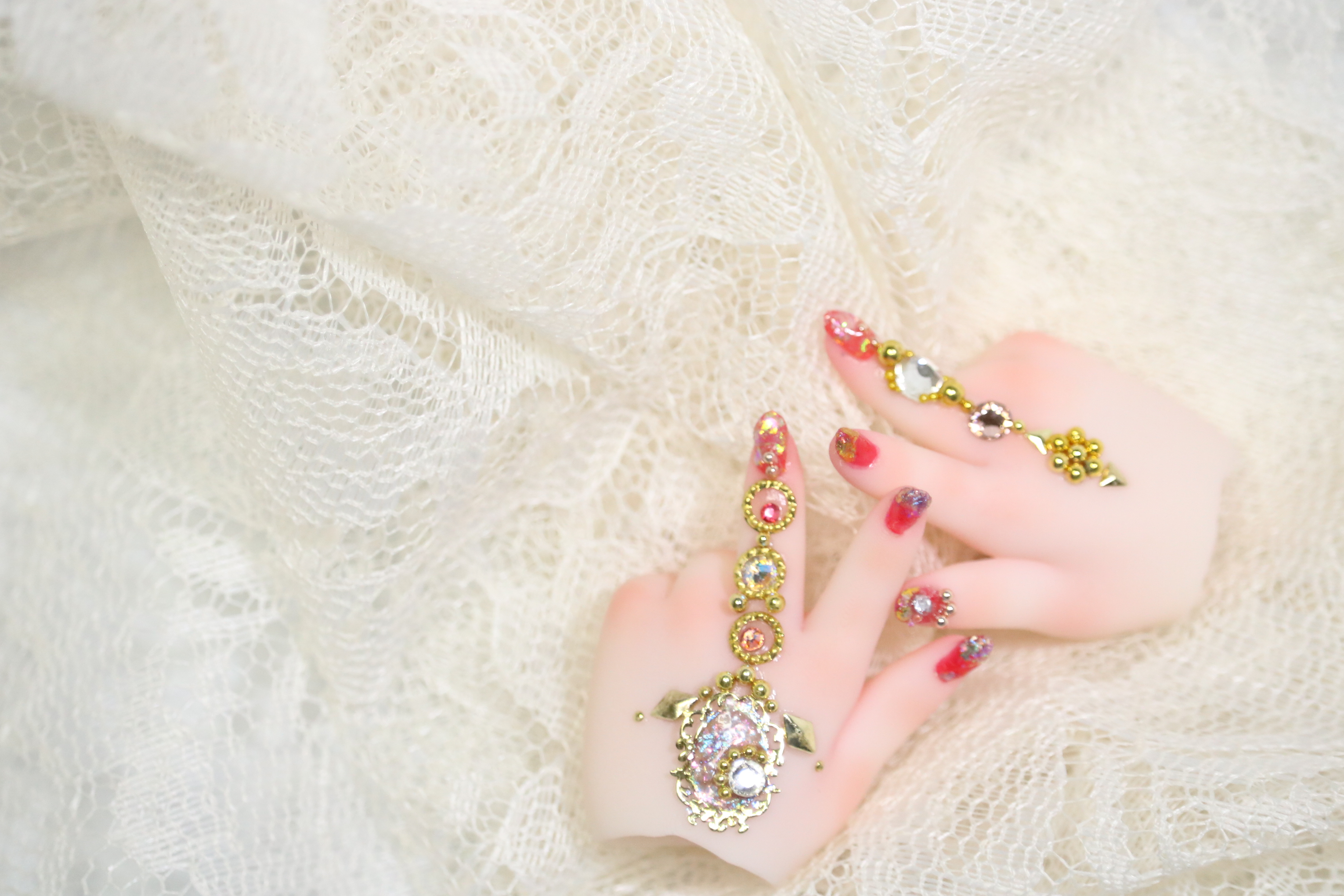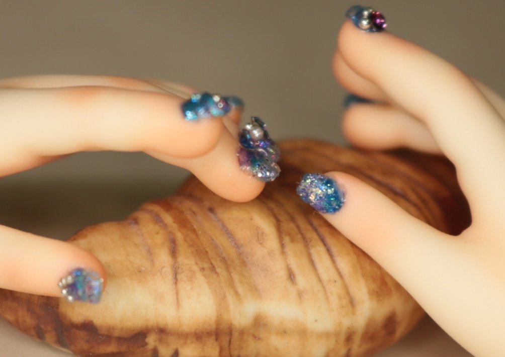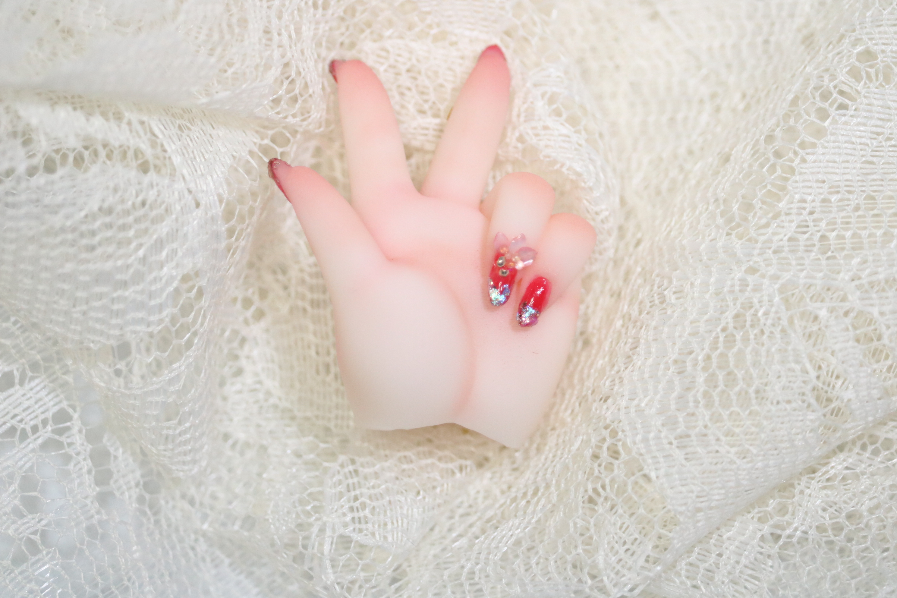 装飾マシマシSプランは、豪華な装飾を爪だけに施すためのプランでしたが、LUTSさんのハンドパーツですと爪が小さくてどうしても物足りない感じになってしまったため急遽爪の長さを出して装飾を施しました。