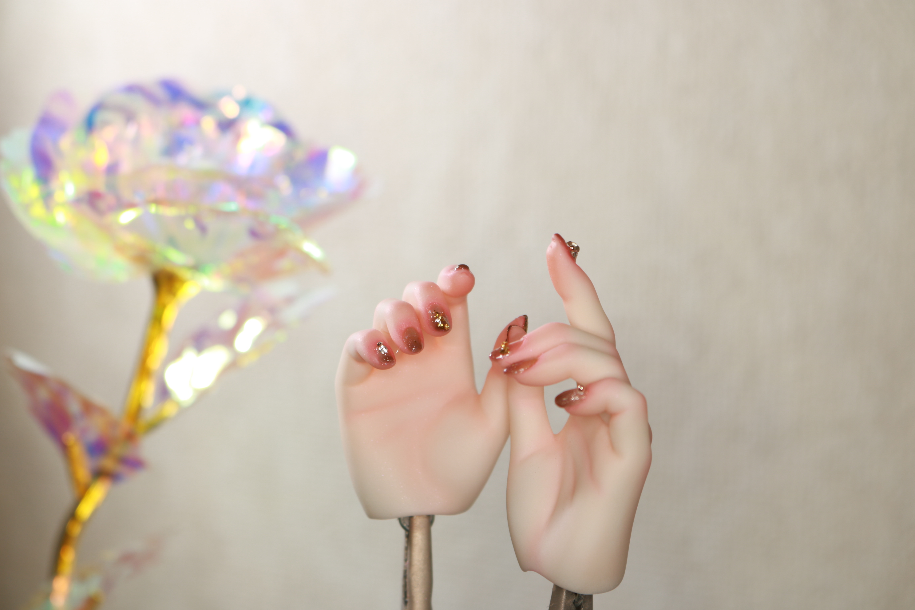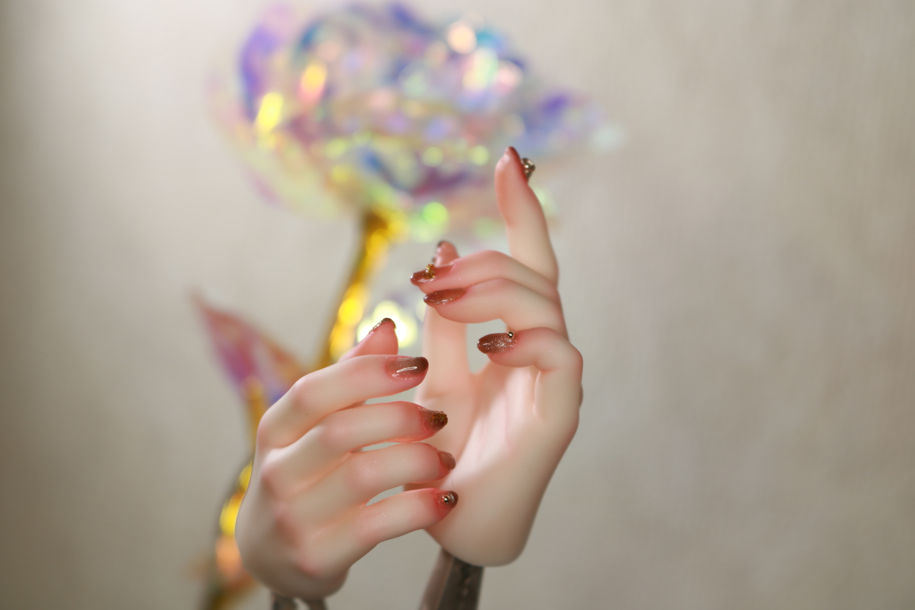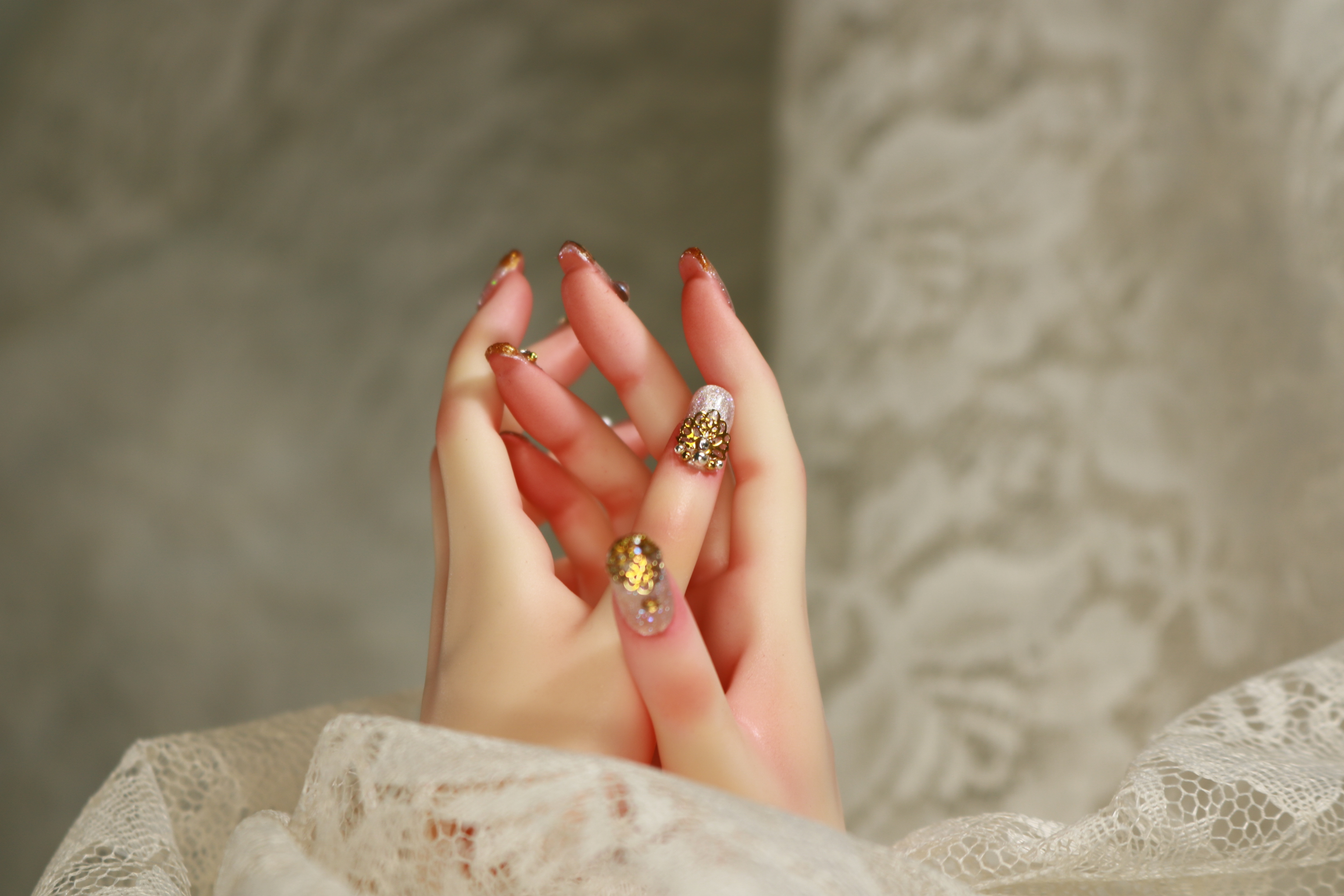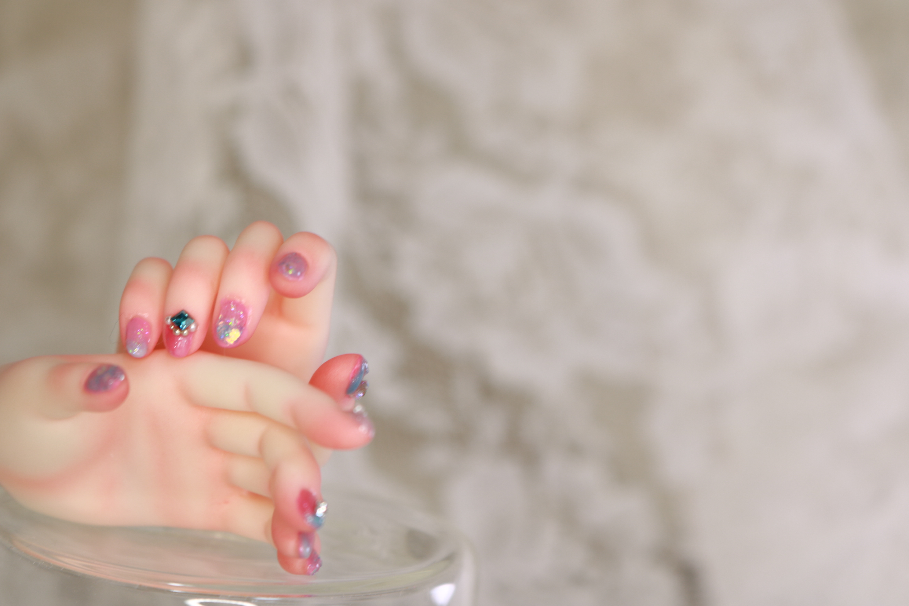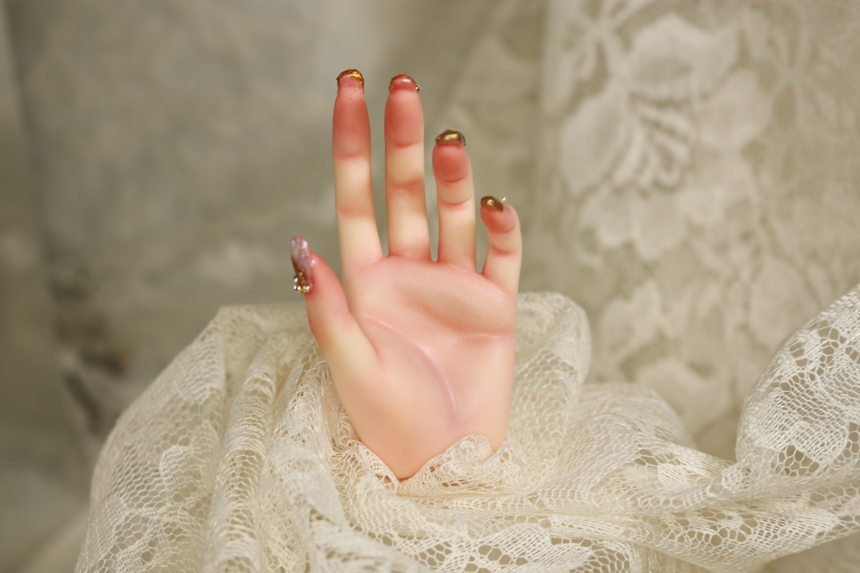 装飾マシマシSプランは、豪華な装飾を爪だけに施すためのプランでしたが、LUTSさんのハンドパーツですと爪が小さくてどうしても物足りない感じになってしまったため急遽爪の長さを出して装飾を施しました。